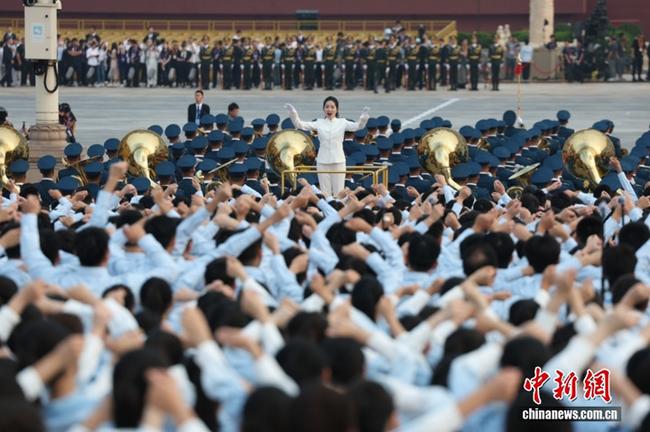 習(xí)近平等來(lái)到天安門(mén)城樓主席臺(tái),全場(chǎng)爆發(fā)出雷鳴般的掌聲。