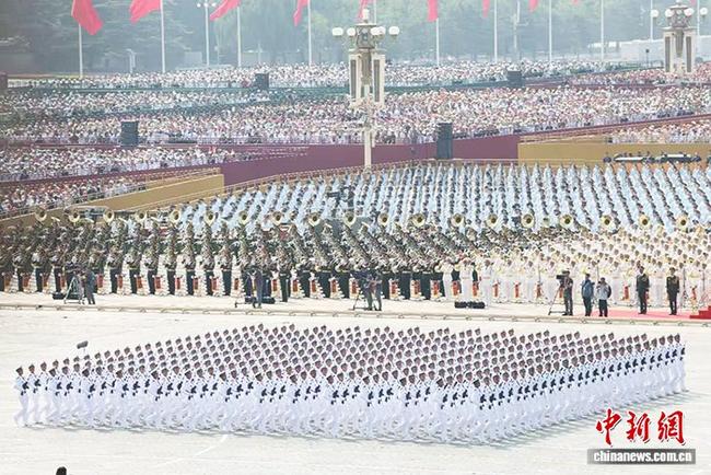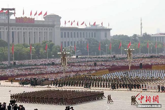 受閱官兵從天安門(mén)前豪邁通過(guò)。(中新社記者 盛佳鵬 攝)